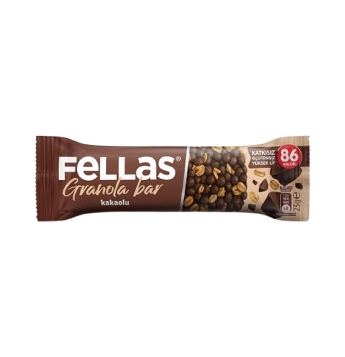 Kakaolu Granola Bar GLUTENSİZ İçindekiler: Yulaf ezmesi(%20), pirinç patlağı, hurma suyu, hindibakökü lifi (inülin), bezelye proteini patlağı(bezelye izolatı, pirinç unu, pirinç nişastası), kakao tozu(%6), kakao kitlesi(%5,5)(kakao yağı, kakao tozu), zeytinyağı, E vitamini, doğal çikolata aroma vericisi.